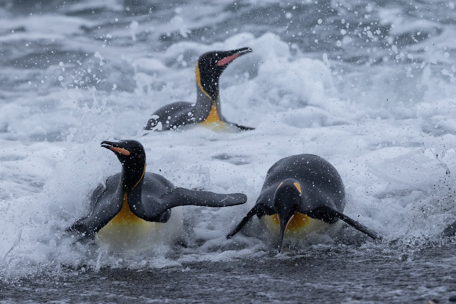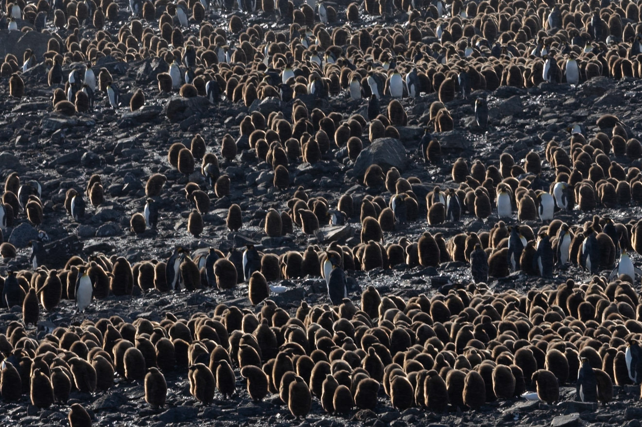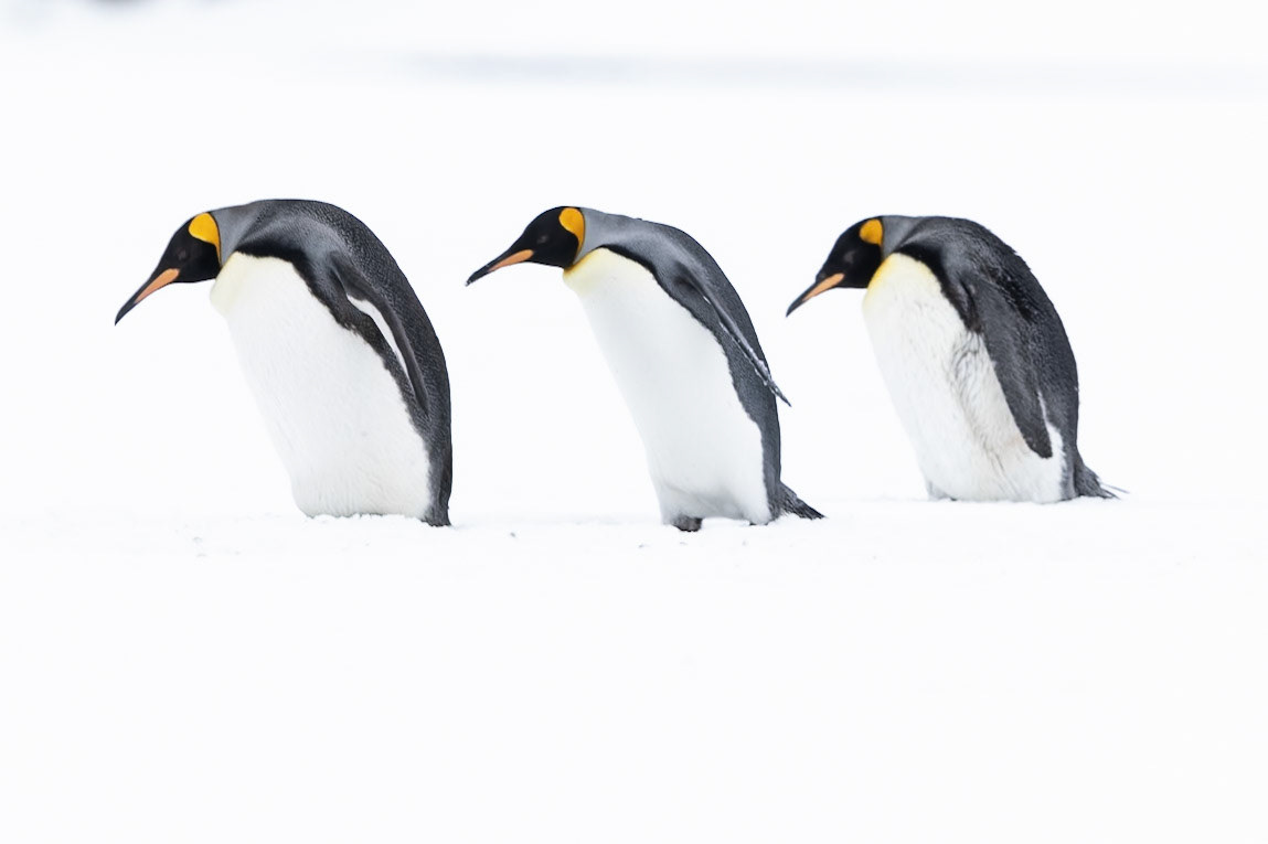 I travelled on the first ship to reach South Georgia after Covid in early October. At this time of year you can still find snow on the ground before the summer melt. The snowy plains were littered with groups of King Penguins. I picked out 2 penguins that were sheltering their heads from the wind and took this shot, St Andrews Bay, South Georgia, October 2022 Canon R3 + EF 500mm f4 lens
